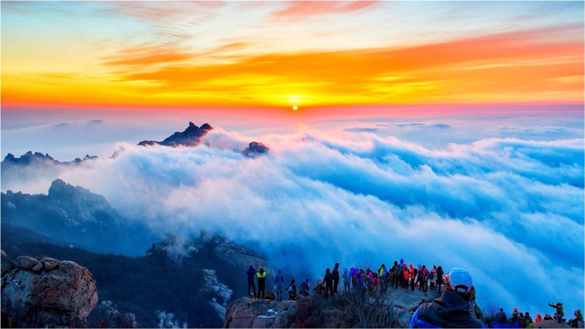 云海奇观,彩球奇观,旭照奇观为其三大景观。巨峰为中国观日出最早佳境之一,观“日出海上”,则唯崂山独具。于崂山度假村或客栈小住,夜看月景,晨观日出,乃崂山之游一大快事。